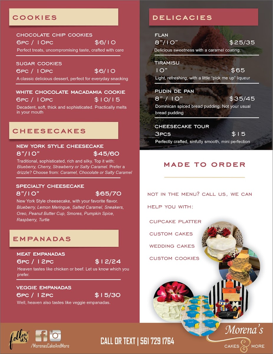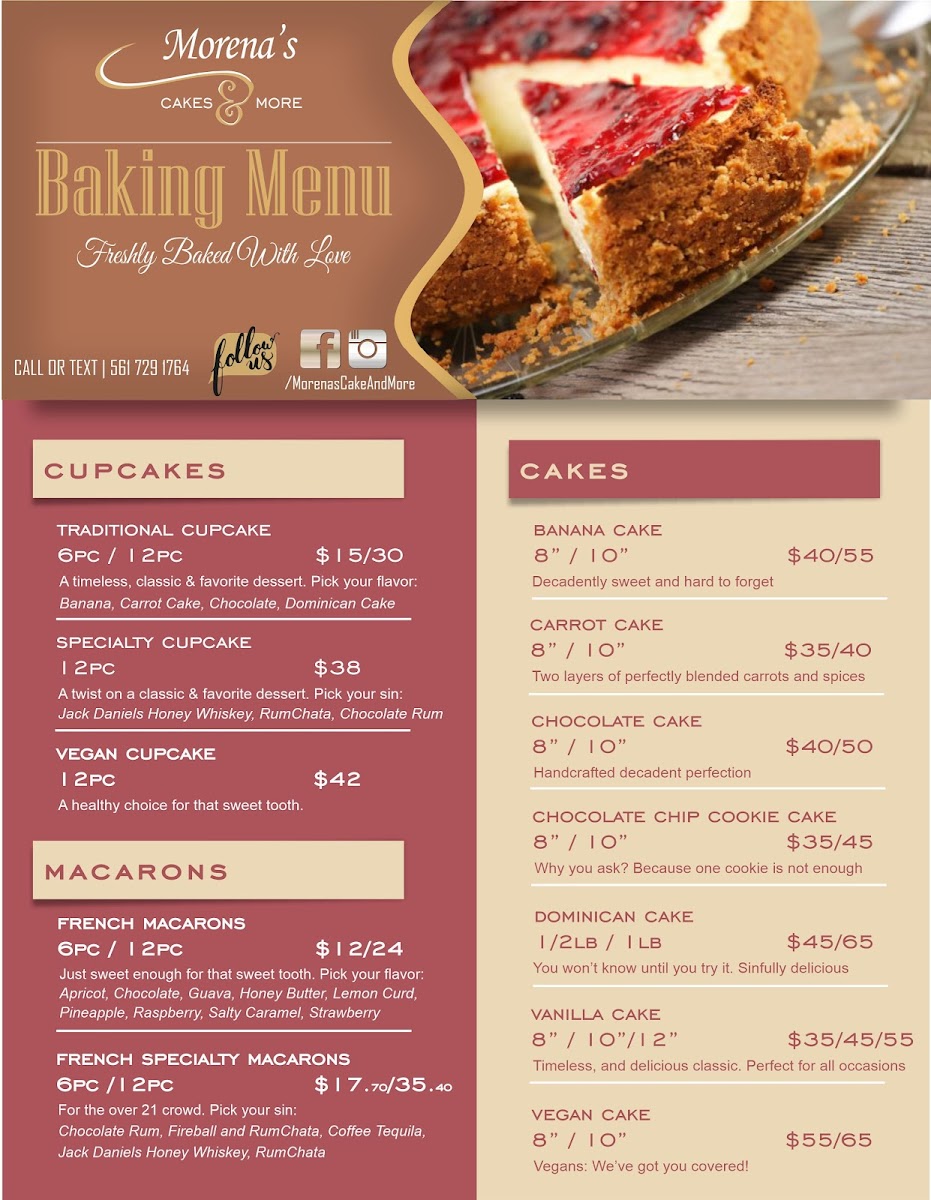 Morena's Cakes And More Menu